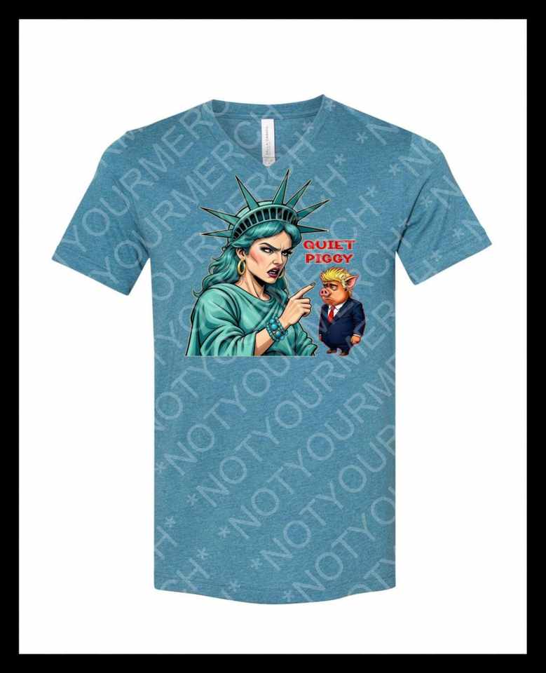 Quiet Piggy Liberty Edition V-Neck T-Shirt Unisex Adult Short Sleeve Graphic Print Digital Printing Promotional Apparel