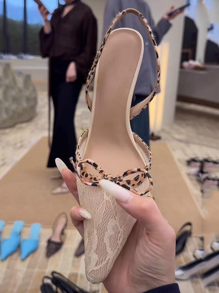 QuiteS Retro con fiocco a punta tacchi alti da donna 2025 estate nuovi sandali con tacco chiuso e tacco leopardato
