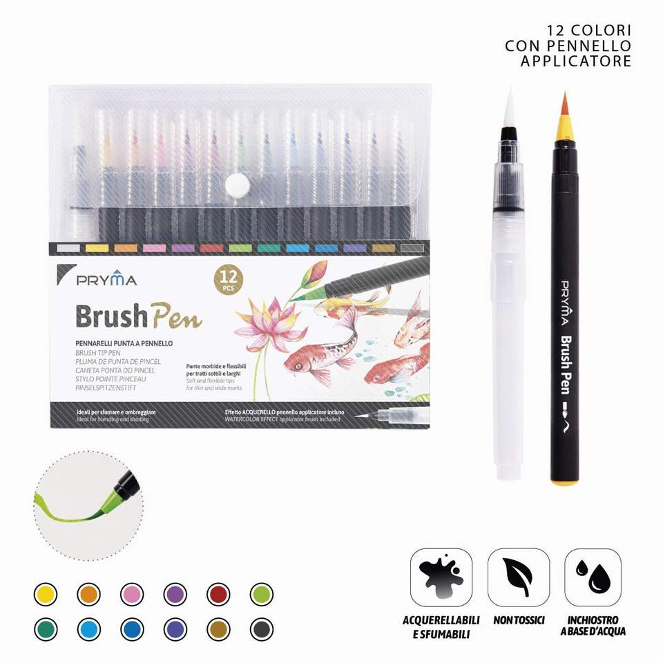 R01 12-Count Soft Tip Watercolor Markers Art Supplies Paint Brushes