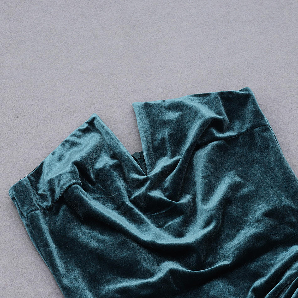 R30409S 2022 primavera e l'estate nuove signore tubo di velluto top scollo a v fessura irregolare abito di media lunghezza abbigliamento di fascia alta abito nero