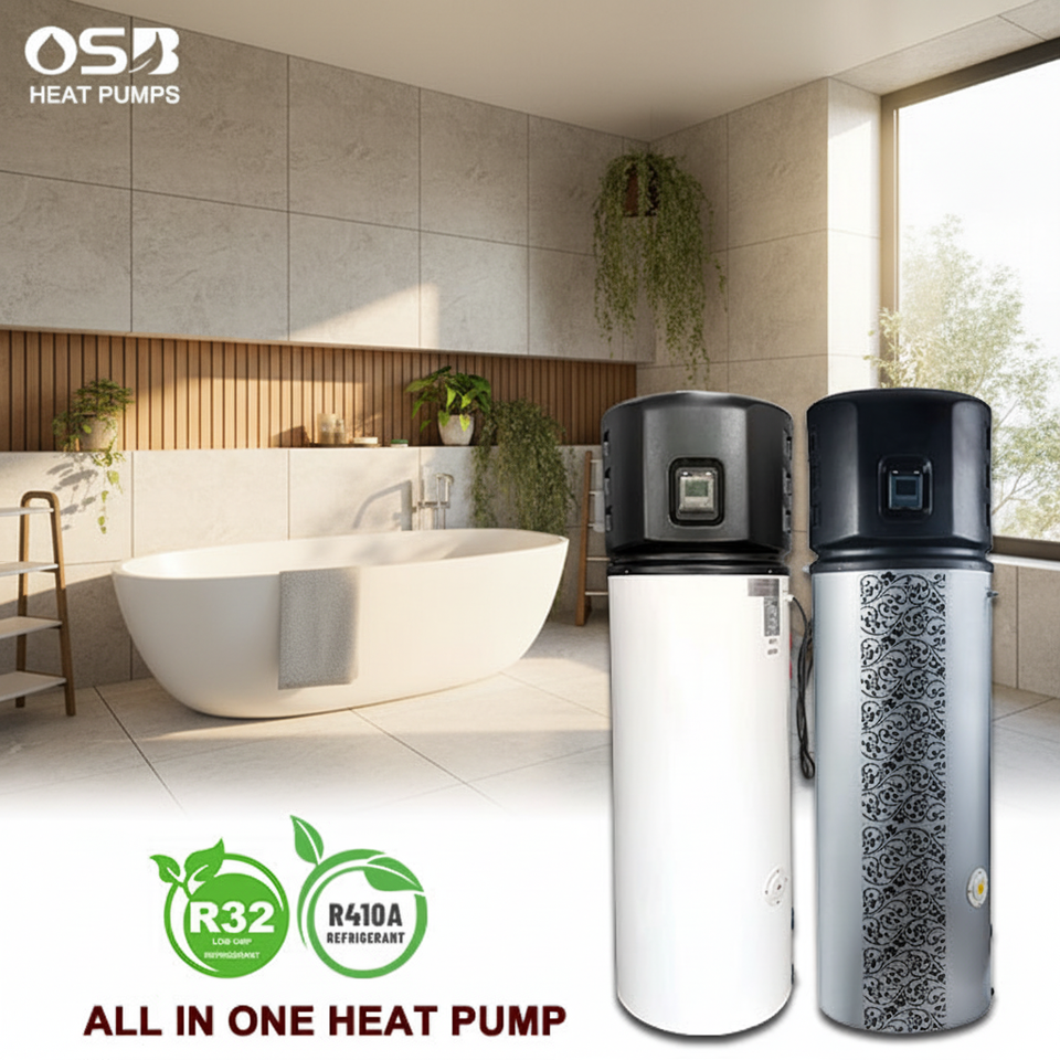 Pompa di Calore Aria-Acqua R32 Tutto-in-Uno con Controllo App, Scaldabagno Solare Intelligente Senza Serbatoio per Acqua Calda Domestica