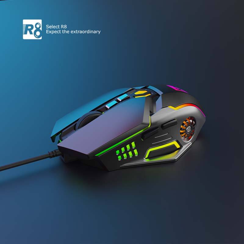 R8 7D 7200DPI Design ergonomico Mouse Gaming Desktop Computer cablato USB 2.0 RGB respirazione Mouse gioco con luce a LED