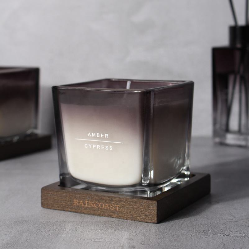 RAINCOAST porta vetro quadrato fatto a mano con candela color ambra profumata 210g per decorazioni per le vacanze a base di cera di palma