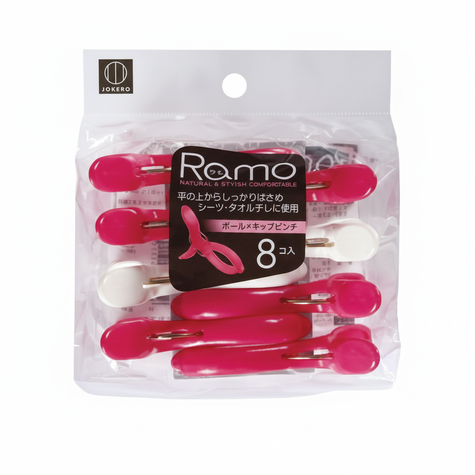 RAMO 8-Piece Pink/White Pole Catch Laundry Clips Elegant Clothes Pins for Organizing Your Clothing