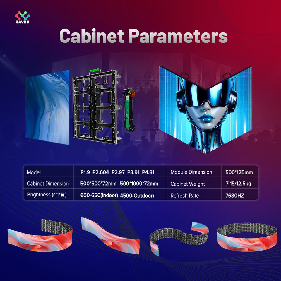 Schermo LED Ultra Sottile RAYBO 72mm per Sfondo Palco, Pannello LED P2.9 P3.91, Parete Video LED a Noleggio per Concerti, Eventi, Chiese