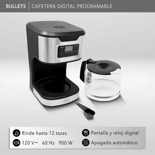 Macchina da Caffè Digitale Programmabile RCA da 12 Tazze, Timer con 3 Impostazioni, Beccuccio Versatore Facile, Attrezzatura per Caffè in Acciaio Inox Resistente