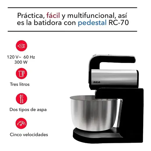 RCA RC-70 Black Hand Mixer with Pedestal USB Battery-Powered Plastic Housing for Household Kitchen Bakery Hotel & RV Use
