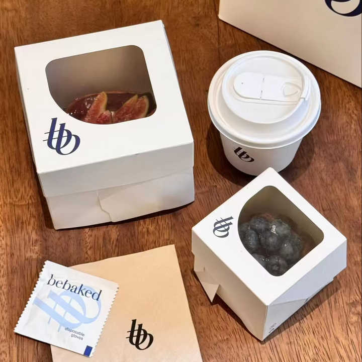 Kit di Imballaggio per Dolci Stile RDY Bebaked, Contenitori Multistrato per Pasti, Sacchetti Argentati, Scatole con Finestra, Tazze da Caffè