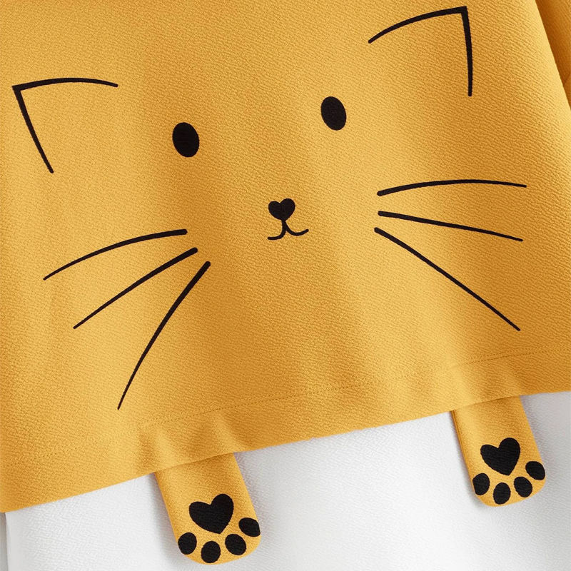Nome del prodotto:Felpa con cappuccio bicolore con stampa gatto e tasca a marsupio