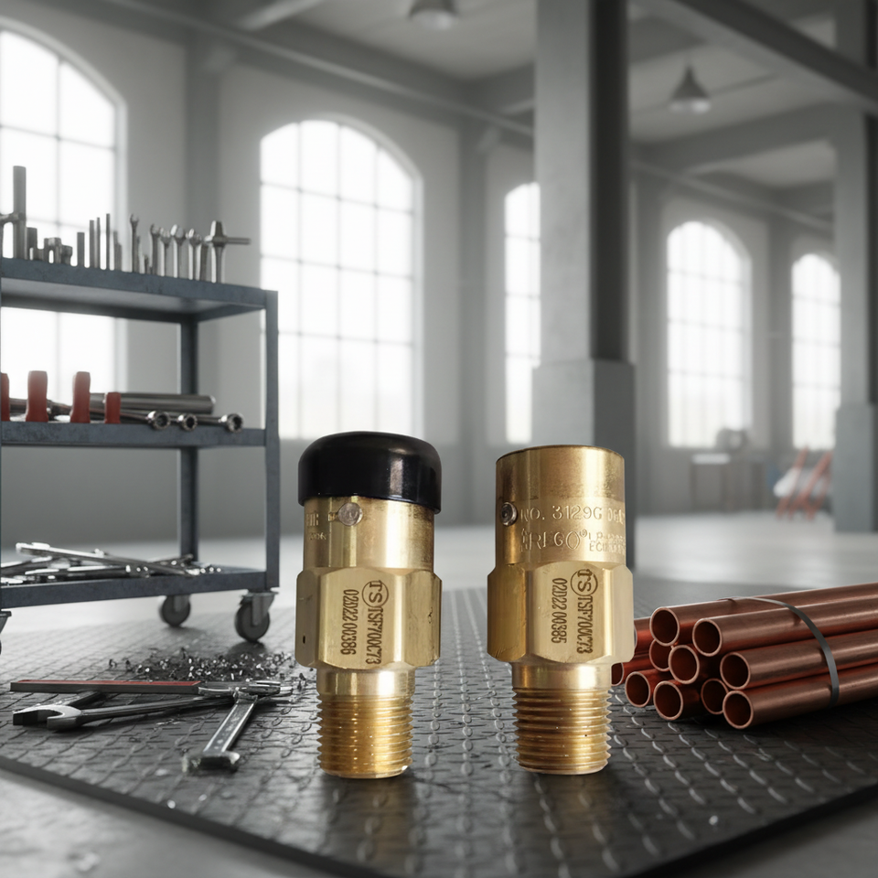 Valvola di sicurezza unidirezionale filettata in ottone REGO 1/2" per cilindri GPL in acciaio, 3129G 250psi, temperatura normale