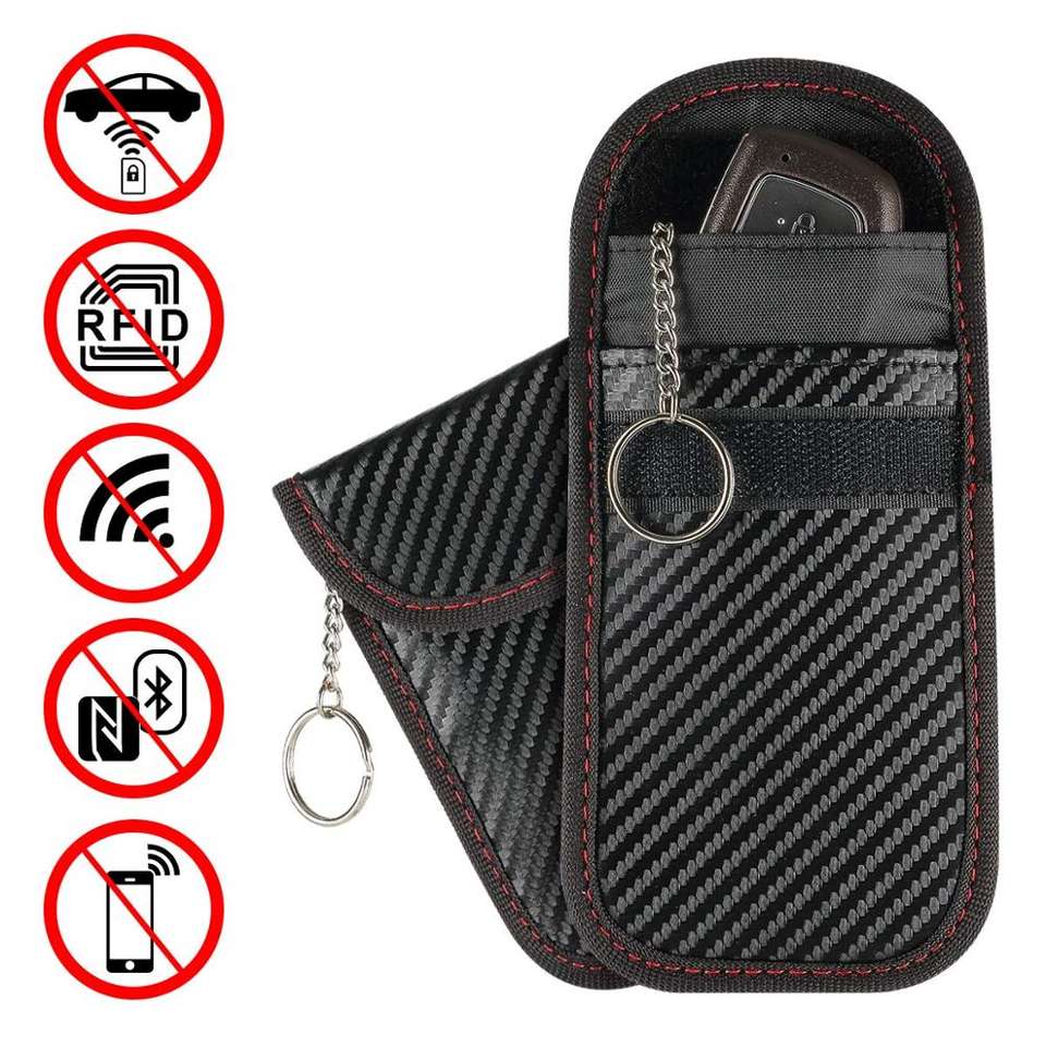 RFID-blocco del portafoglio segnale disgregatore Jammer in fibra di carbonio materiale in pelle con gancio per chiavi che impedisce la perdita di informazioni