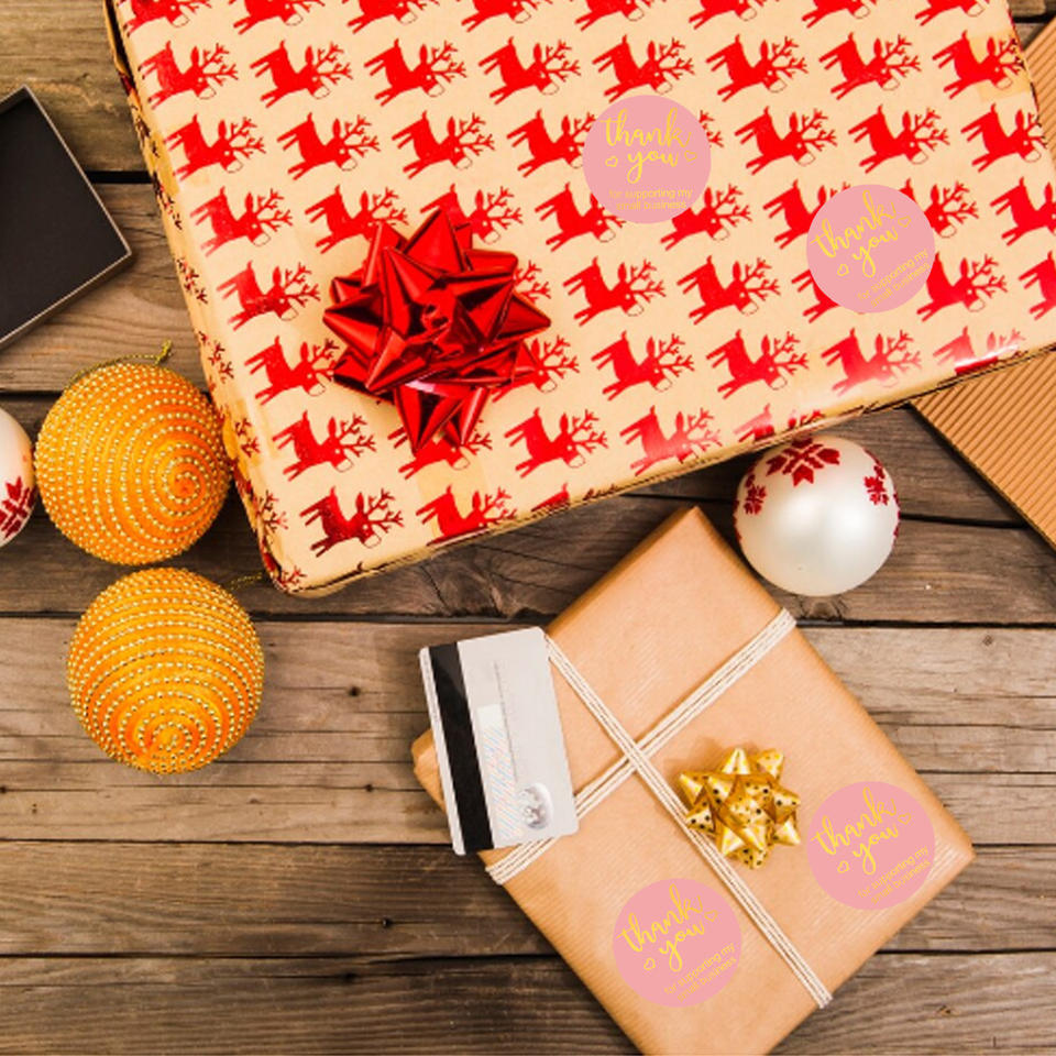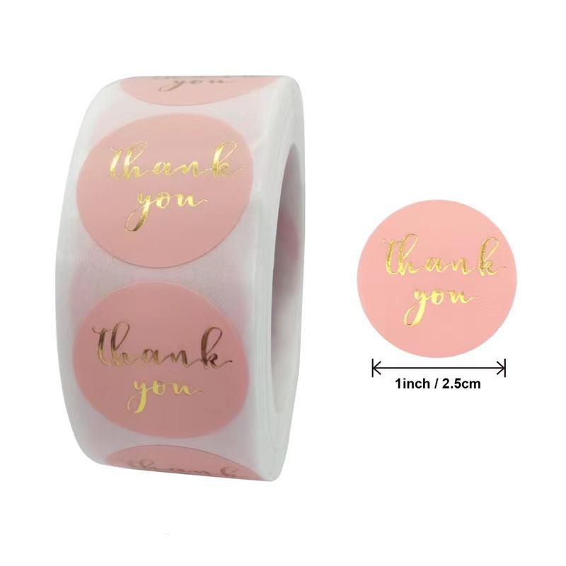 Etichette Adesive Decorative Personalizzate RG, 500 Pezzi/Rotolo, Impermeabili, Lucide, Circolari, in Carta Artistica, con Scritta 'Grazie', Promozionali, con Confezione Regalo Gratuita