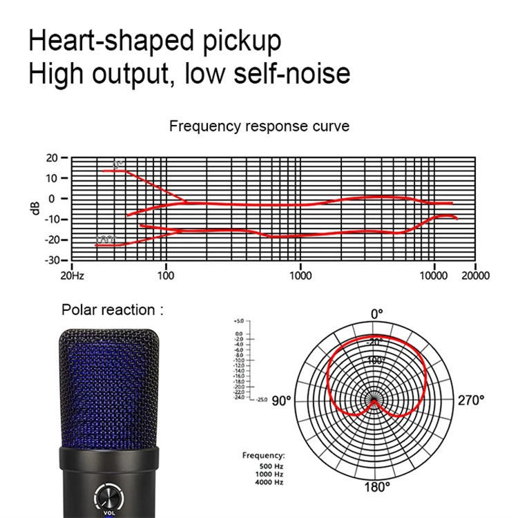 Stile:microfono a mano, USB Microfono, Desktop, Microfono con cavo