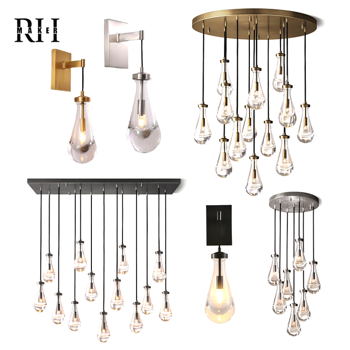 Lampadario Rotondo in Vetro e Ottone Stile Americano RHMAKER, Fonte di Luce Regolabile, Standard Globale, Arredamento RH per la Casa
