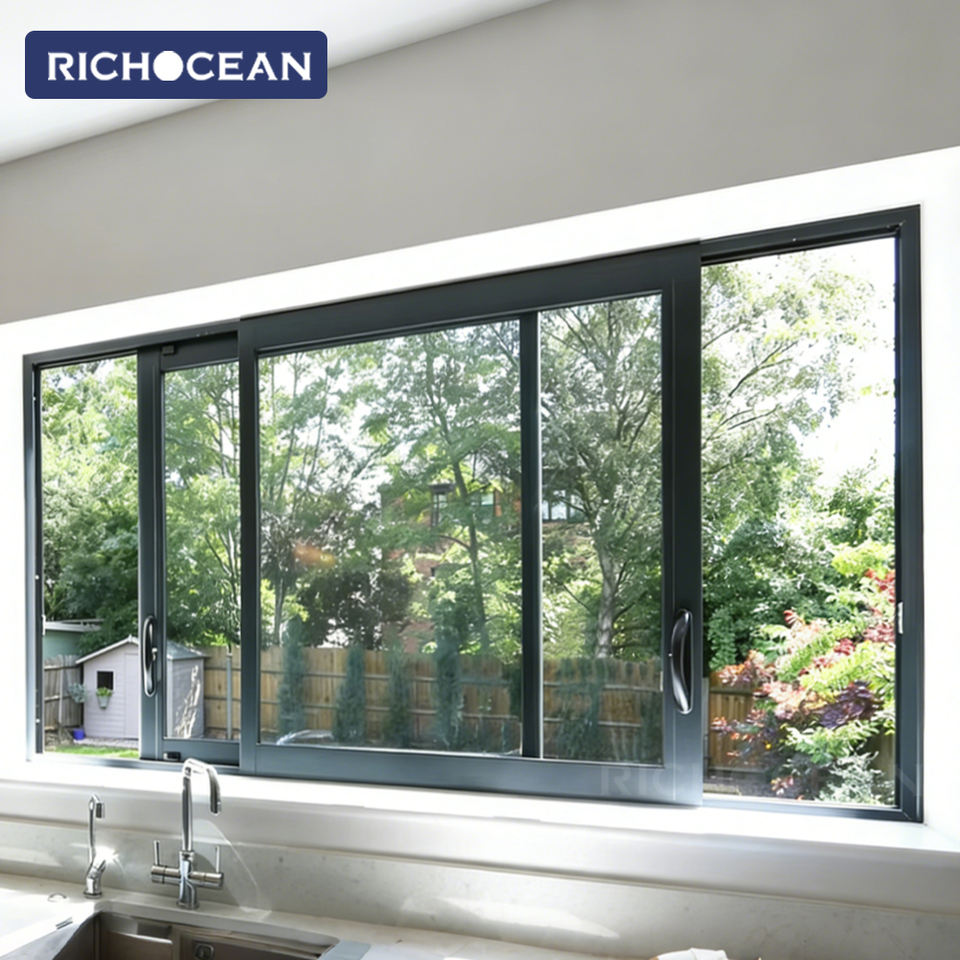 Finestra Scorrevole in Alluminio RICHOCEAN con Vetro Doppio Basso Emissivo, Impermeabile per Esterni, con Zanzariera