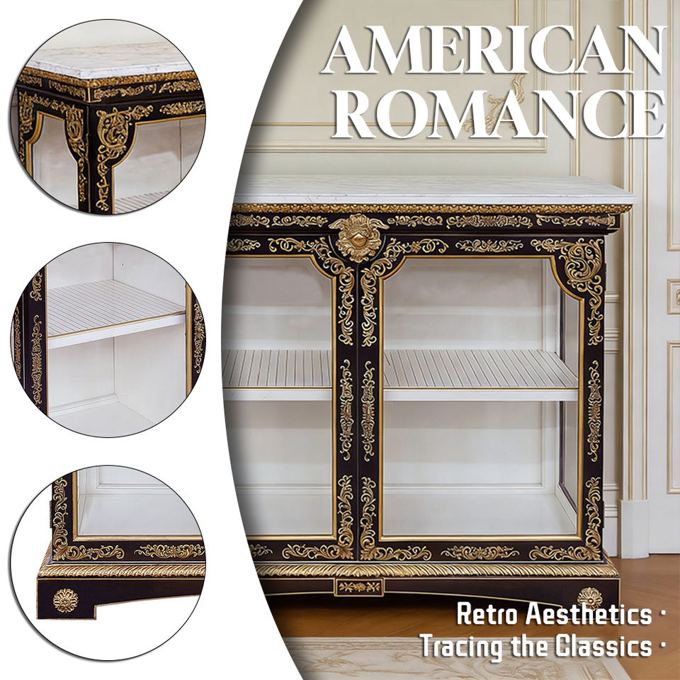 RIKKASI House Mobili su Misura, Vetrina Classica Antica a 2 Ripiani in Legno Massello per Soggiorno