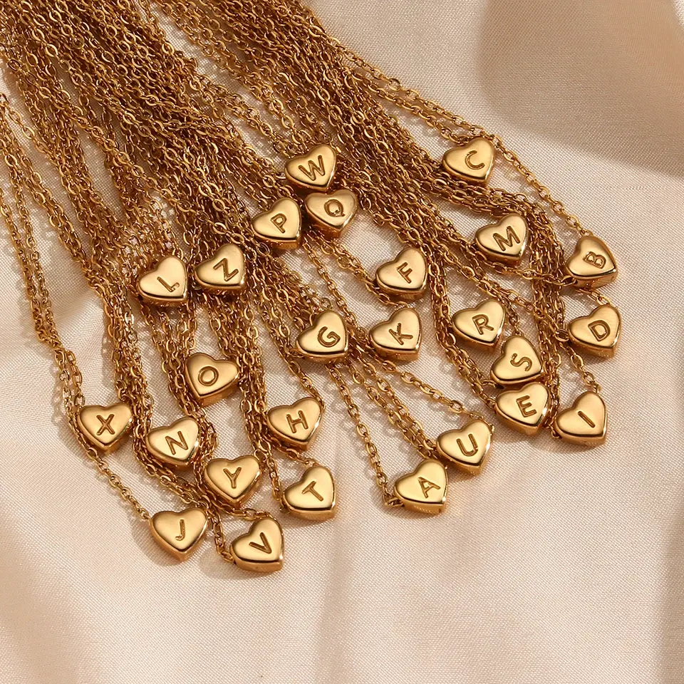 Collana Minimalista RINHOO con Iniziale a Cuore, Gioiello in Acciaio Inossidabile Placcato Oro 18k, Ciondolo a Forma di Cuore con Lettera, Regalo