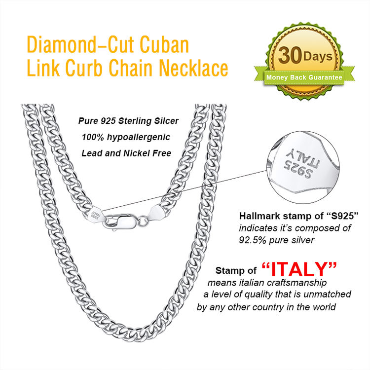 RINNTIN SC36 925 Sterling Silver Chains Hip Hop Jewelry 3.6/5/7mm Chunky Diamond-Cut Cuban Link Chain Necklace for Men Women