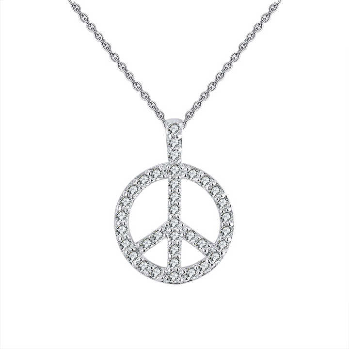 RINNTIN SN217 Fashion Women Jewellery Real 925 Silver Pave Diamond Peace Sign Charm Pendant Necklace
