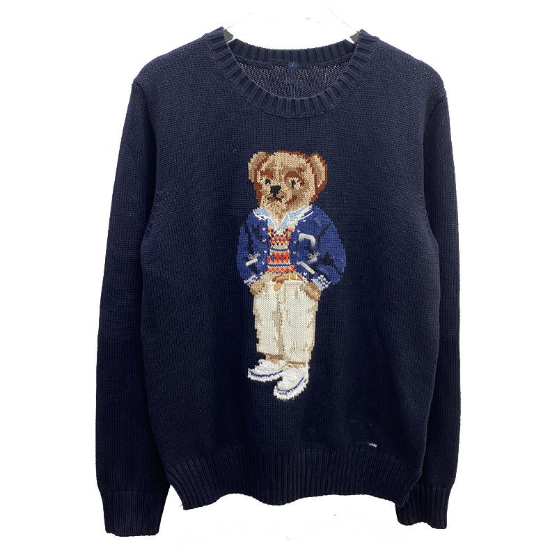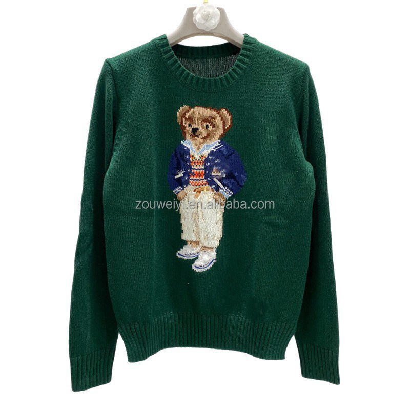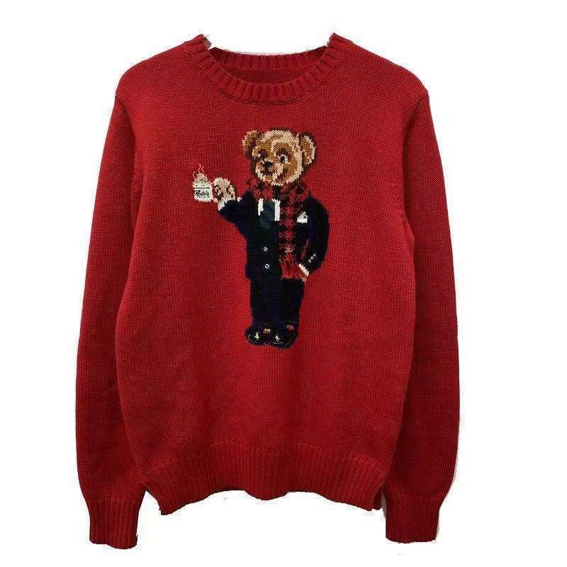 Maglione Invernale da Donna RL Brand con Collo Tondo, Lavorazione a Maglia, Ricamo Natalizio con Orso e Pony, Stile Vintage