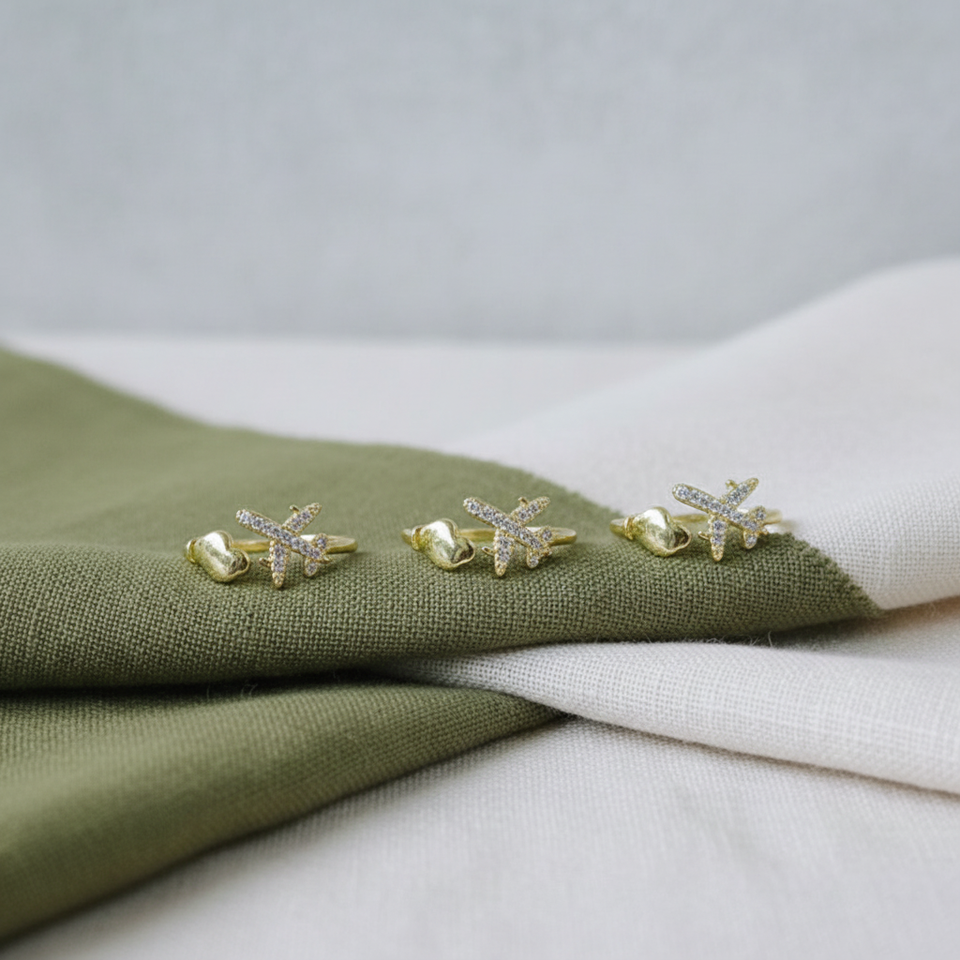 RM1599 Dainty Delicate 18k Gold Plated Diamond CZ Micro Pave Airplane Plane Rings for Ladies