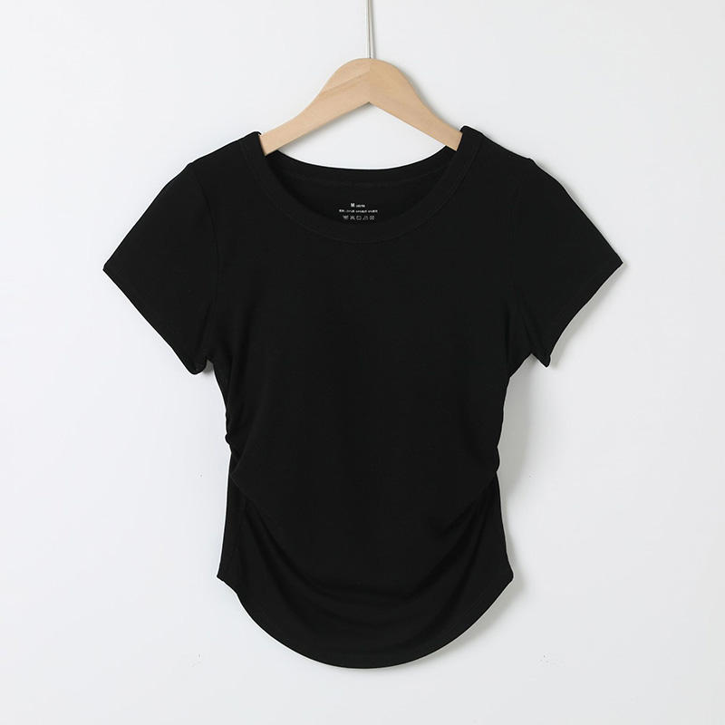 RNSHANGER Harajuku Women's Crew Neck Short Sleeve Breathable Summer Casual Slim Fit T-shirts with Ruched Sides Detail
