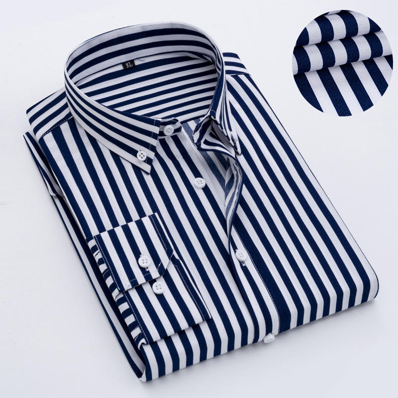 RNSHANGER Men's Thin Striped Long-sleeved Shirt Male Slim Business Casual Plaid Breathable Shirts Fashion Men Dress Shirt