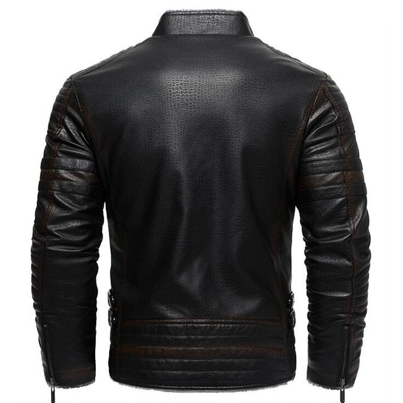 RNSHANGER Mens Leather Jackets Winter Men's Retro Fleece Leather Jacket Men High Quality Thickened Faux Fur PU Leather Coat