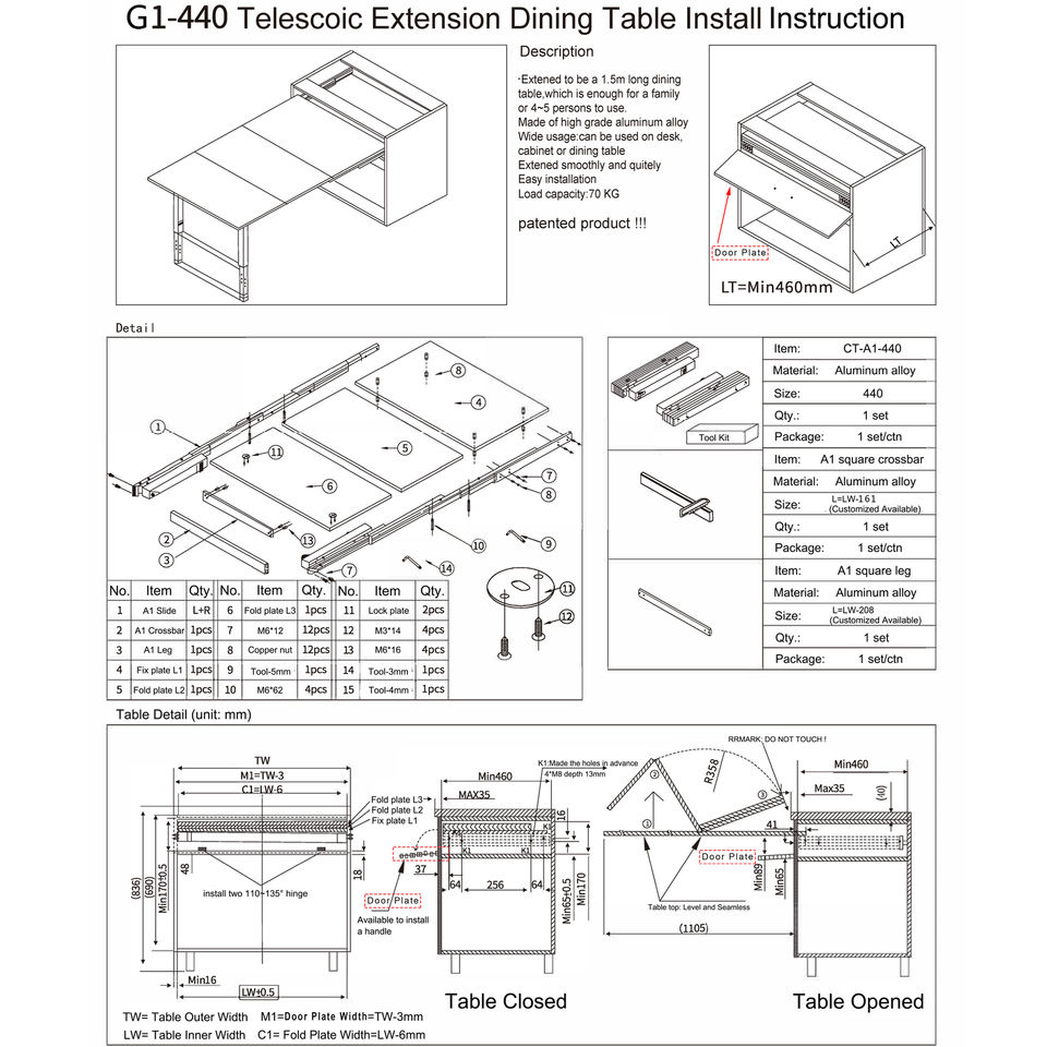 1500MM (G1-440) / 1800MM (G1-540)