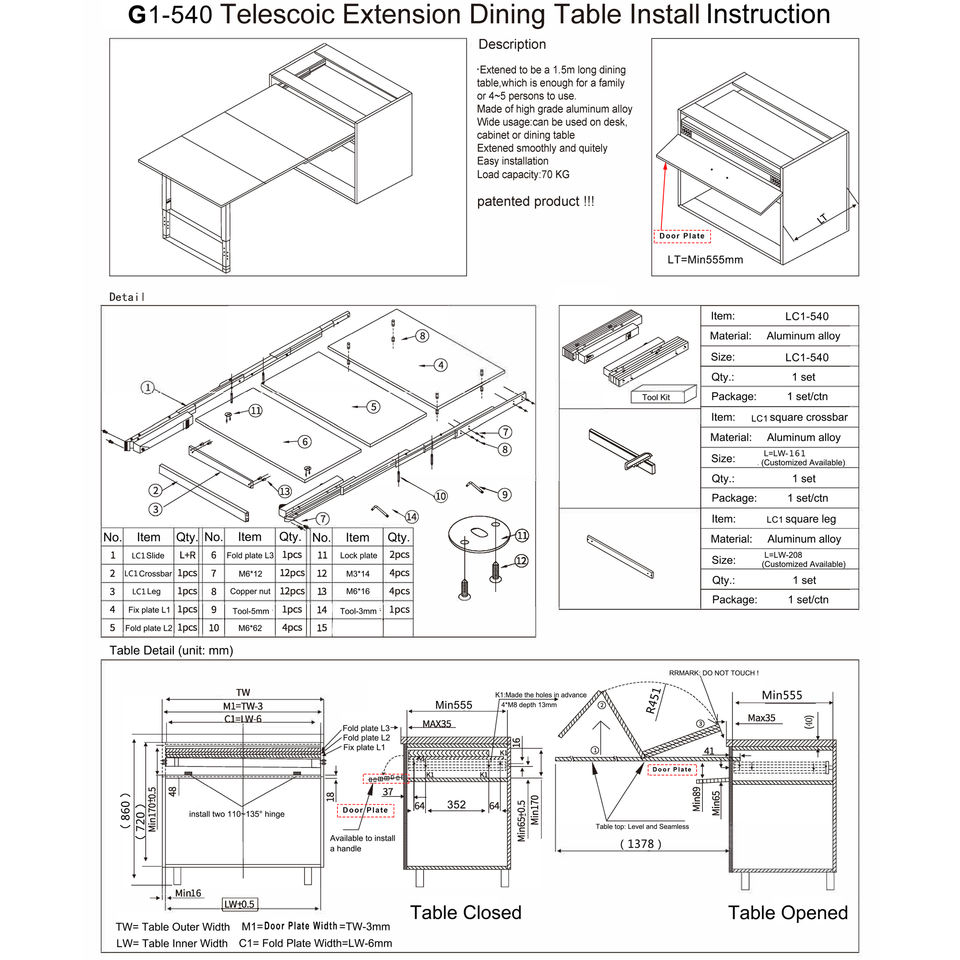Nome del prodotto:Rotaie di scorrimento del tavolo da pranzo pieghevole nascosto