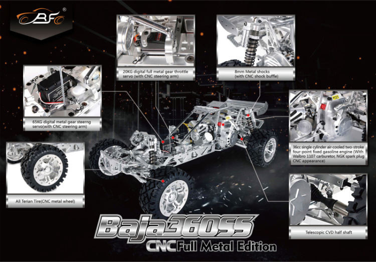 ROFUN BAHA 360SS 2024 Buggy Truck RC Scala 1:5 Completamente in Alluminio CNC con Parti Metalliche, Motore a Scoppio Nitro 36CC (Senza Radiocomando)