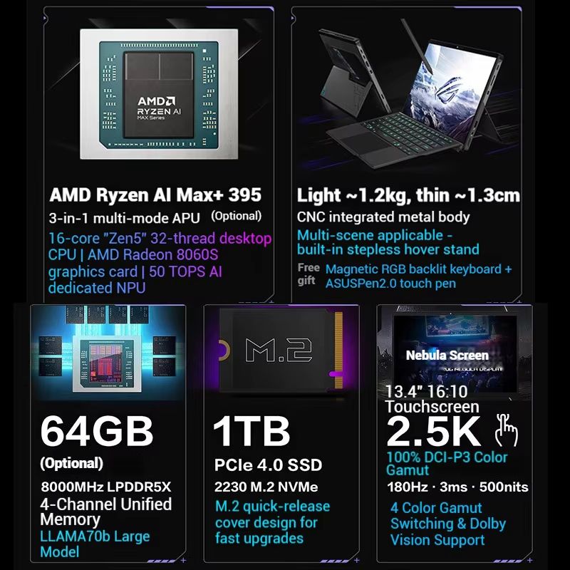 ROG Flow Z13 Laptop Nuovissimo, Computer Portatile da Gaming 13.4 Pollici 2.5K 180Hz Touchscreen con Funzione di Scrittura a Mano, Tablet Windows