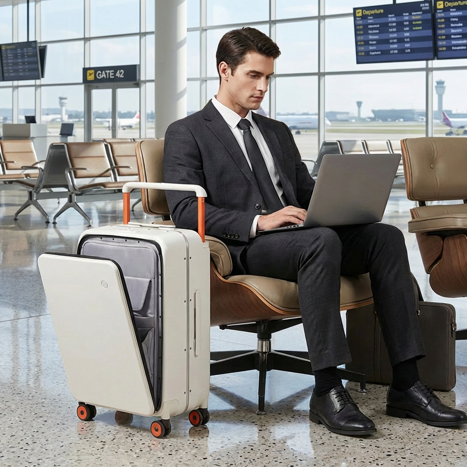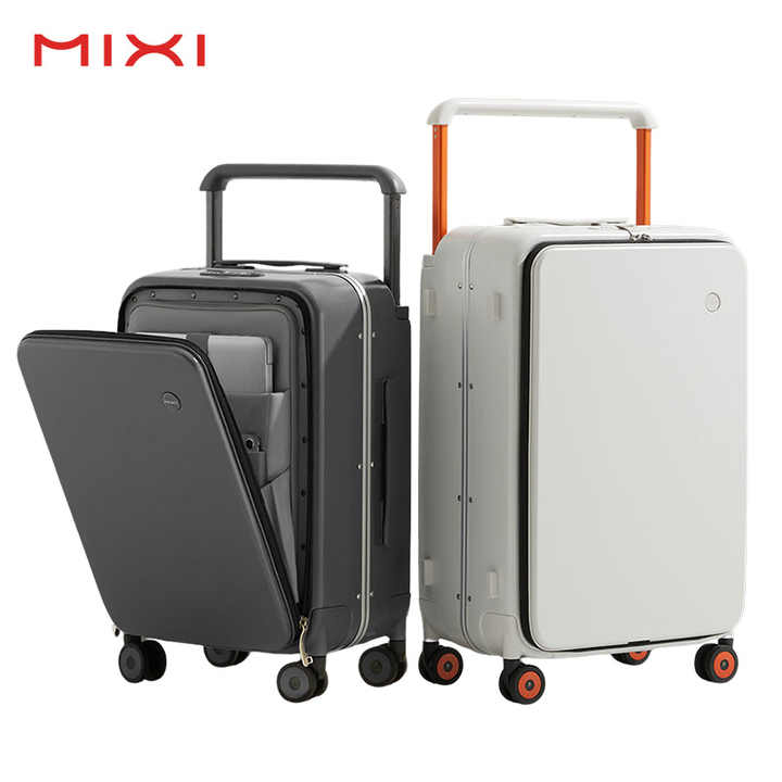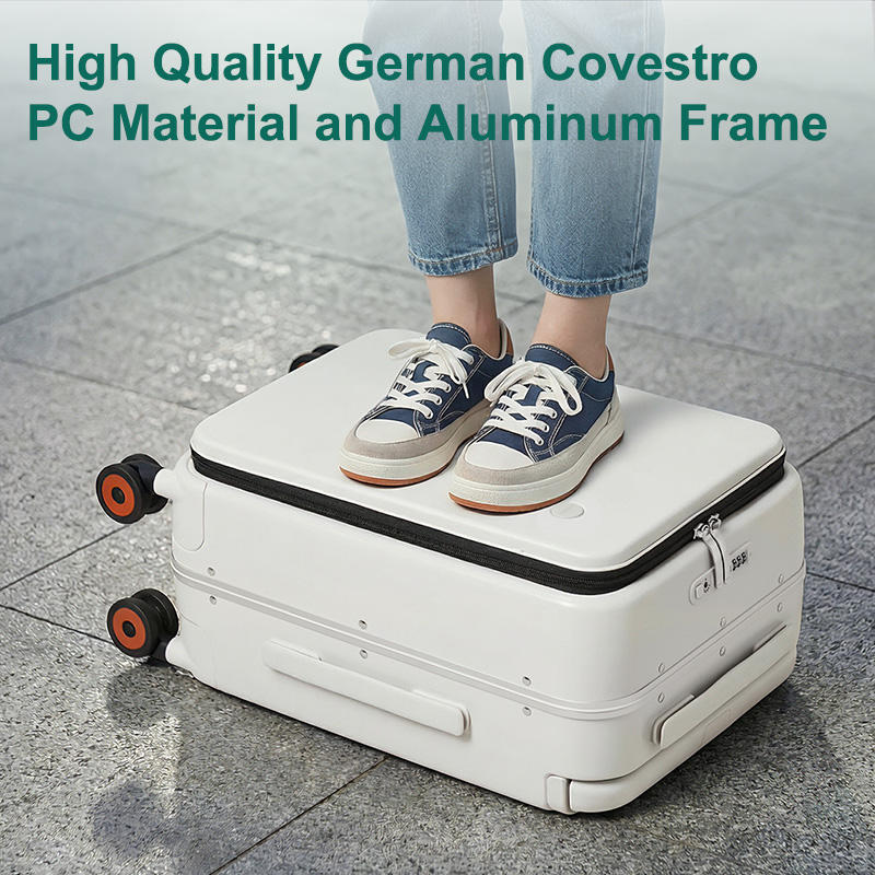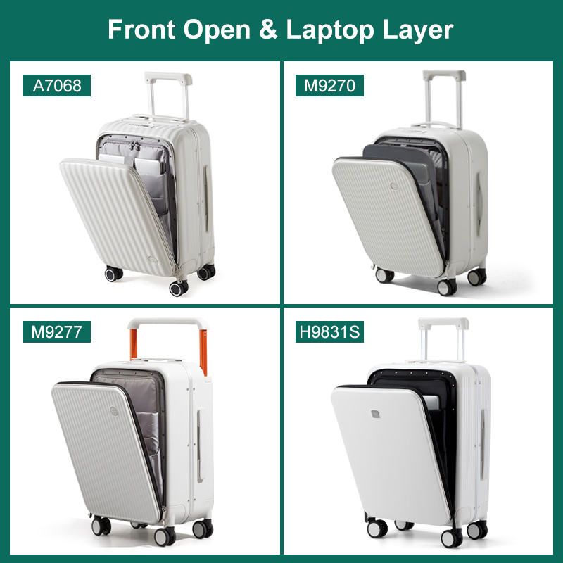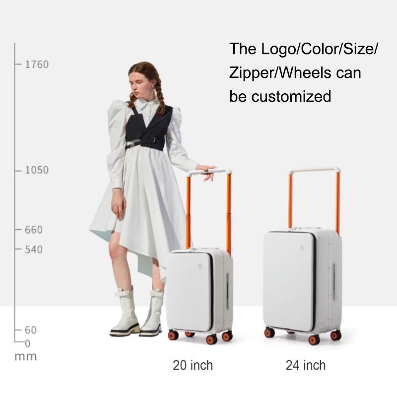 Valigia Trolley di Alta Qualità ROHS GRS 20 24 Pollici Bianca Grigia alla Moda con Apertura Frontale e Scomparto per Laptop