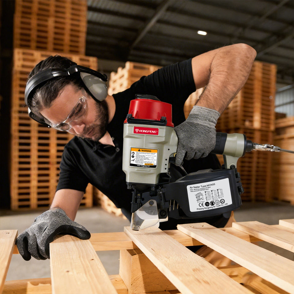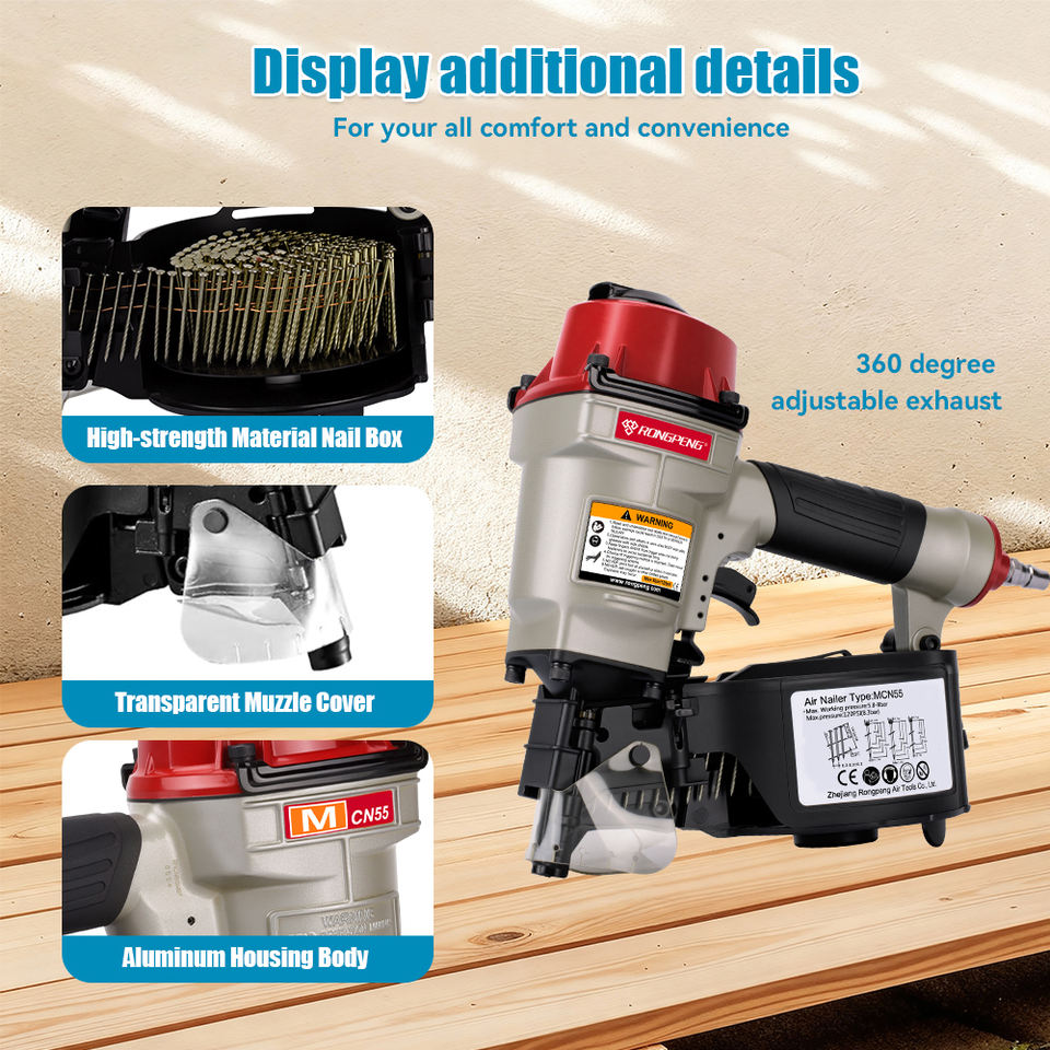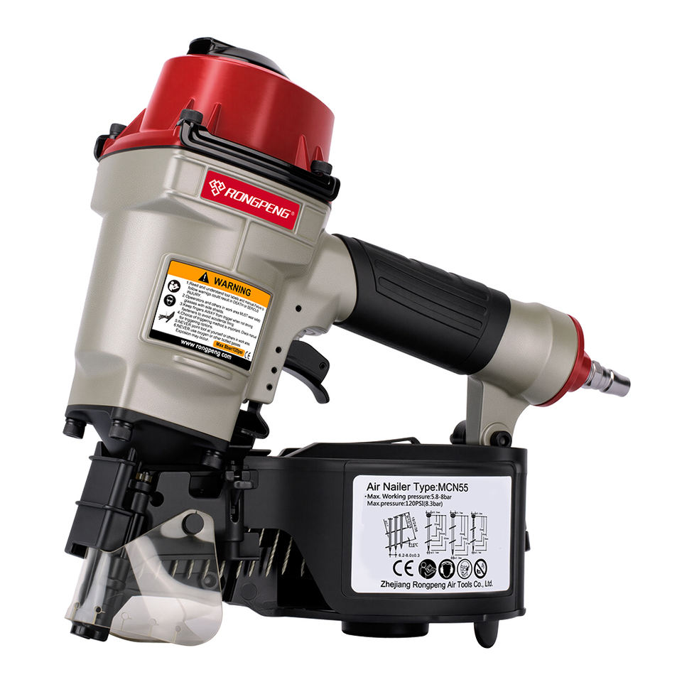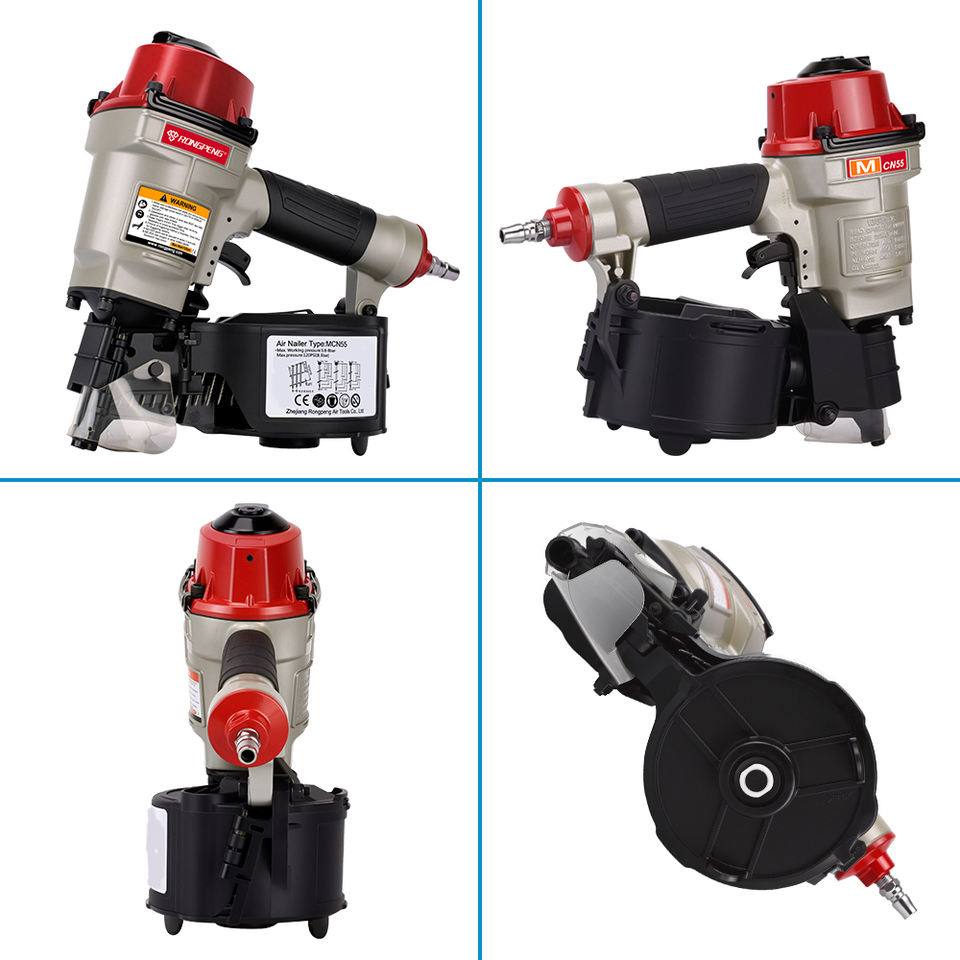 Pistola sparachiodi a bobina per coperture pneumatiche RONGPRNG MCN55 con chiodi saldati a filo piatto da 15 gradi