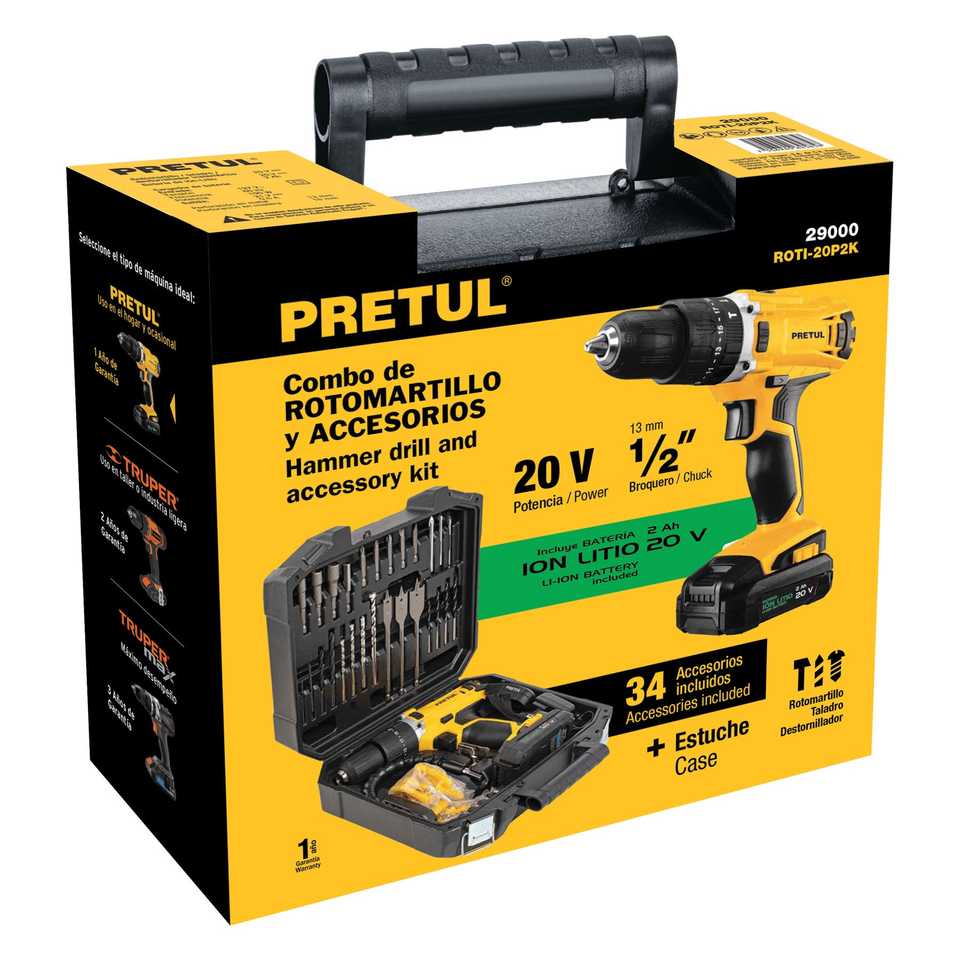 ROTI-20P2K 1/2\" 20V Cordless Hammer Drill Kit 32 Accessories Variable Speed Electric Brushless Drill for DIY Battery Powered