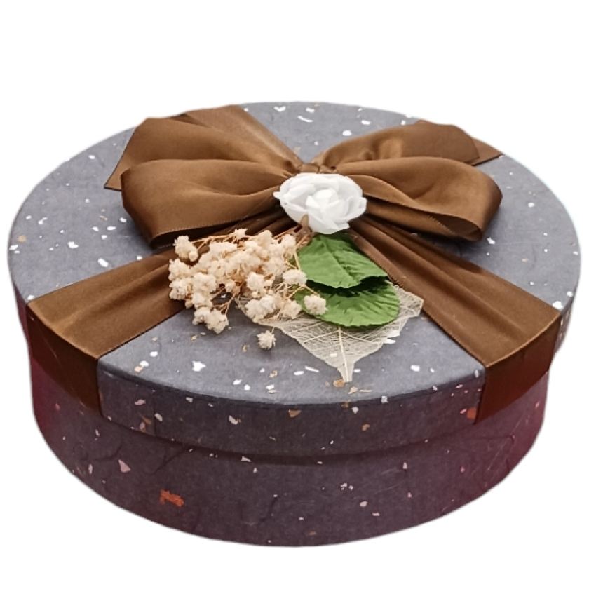 Scatola Rotonda Grigia con Fiocco 19,5x6cm