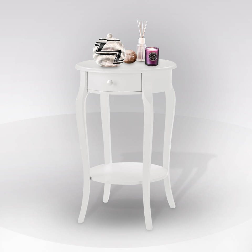 ROUND TABLE WITH 1 DRAWER, WHITE LACQUERED