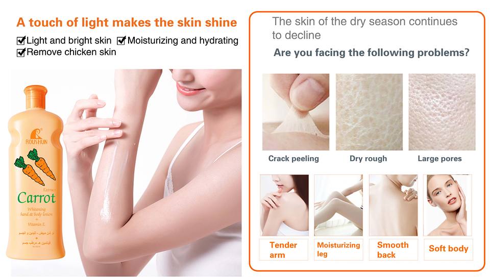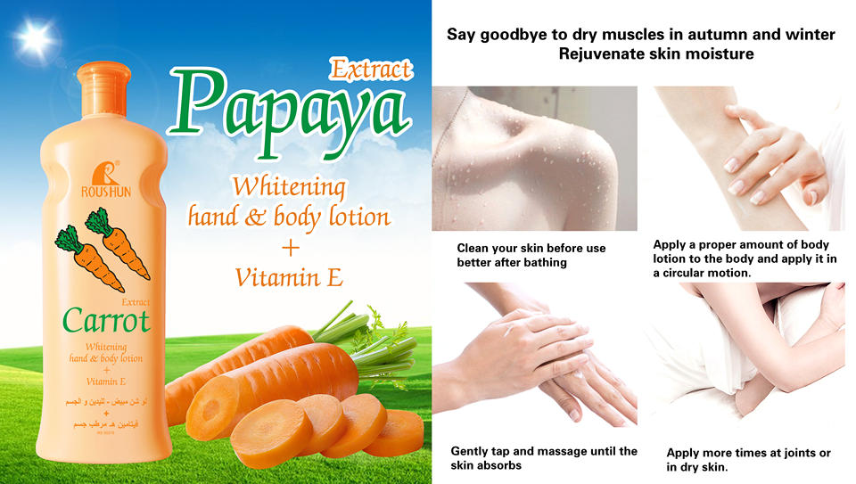 Lozione Corpo alla Carota ROUSHUN Idratante Sbiancante Nutriente con Vitamina E Lozione per Mani e Corpo Crema Corpo