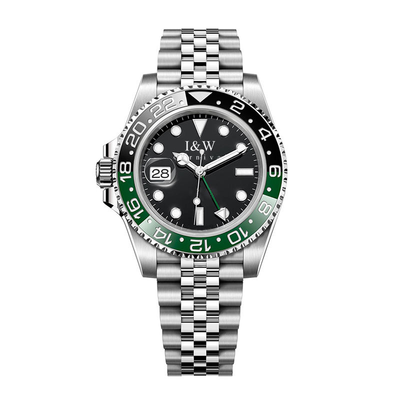 Orologio Automatico ROX I&W Marca G-M-T, Meccanico da Uomo Impermeabile con Bracciale in Acciaio Inossidabile e Cassa in Acciaio Inossidabile