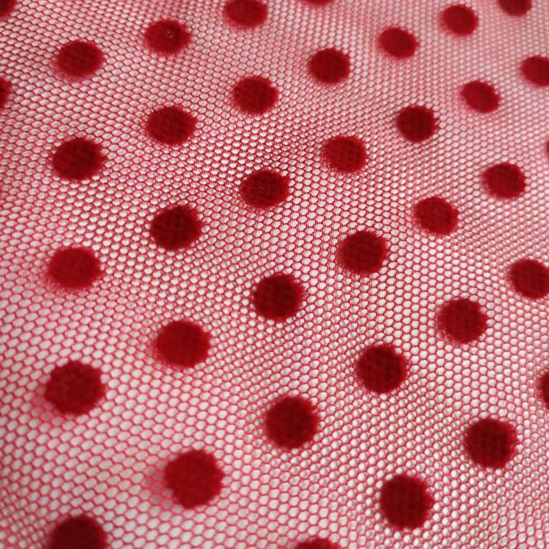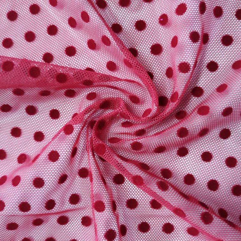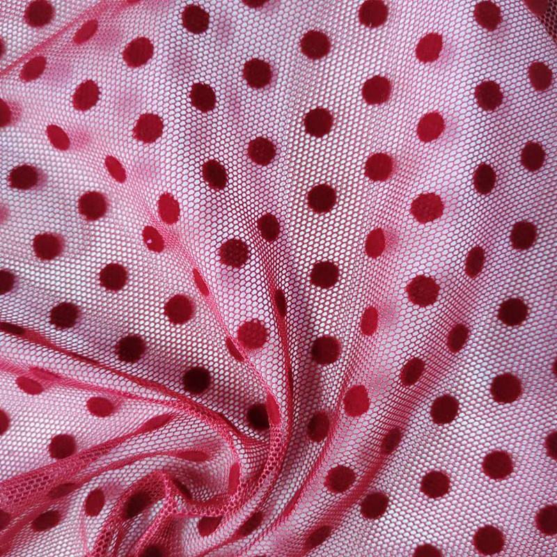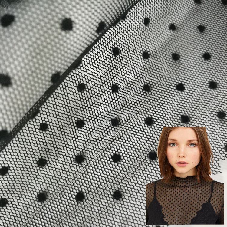 RTS Small Polka Dots Nylon Flocked Tulle Fabric Polka Dot Flocking Mesh Fabric for Sexy Lady Shirt Dress