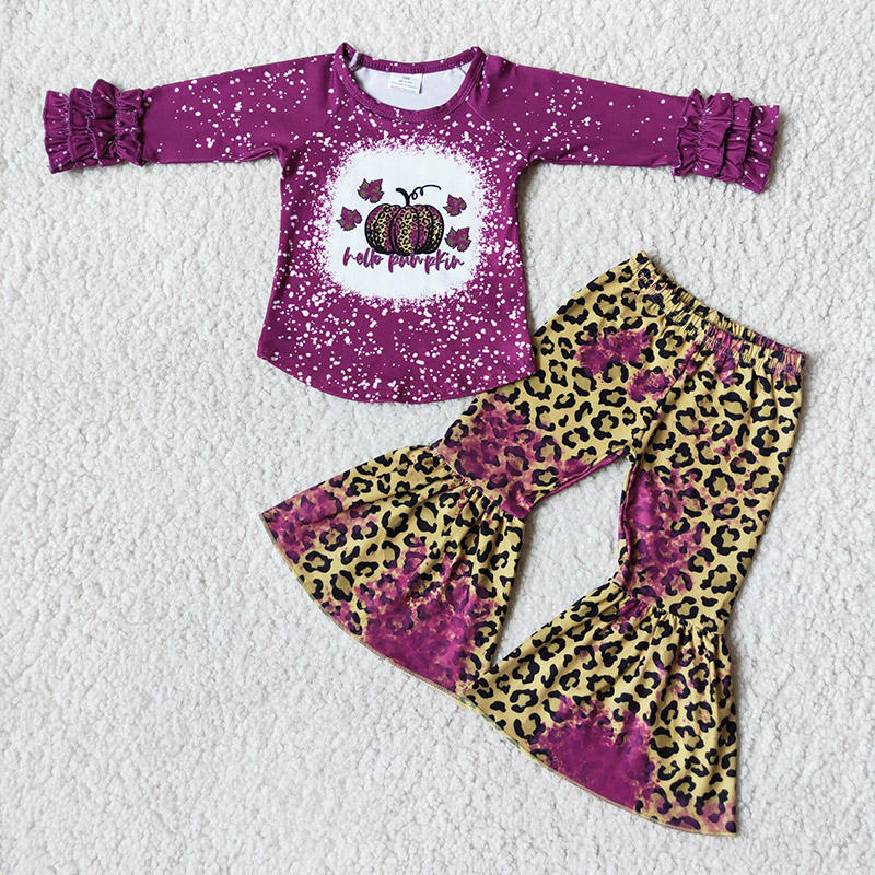 RTS Wholesale Kids Boutique Outfits Clothing Sets 2pcs Short Sleeve Shirt Suspender Bell Bottom Pants Baby Girls Clothes Low Moq