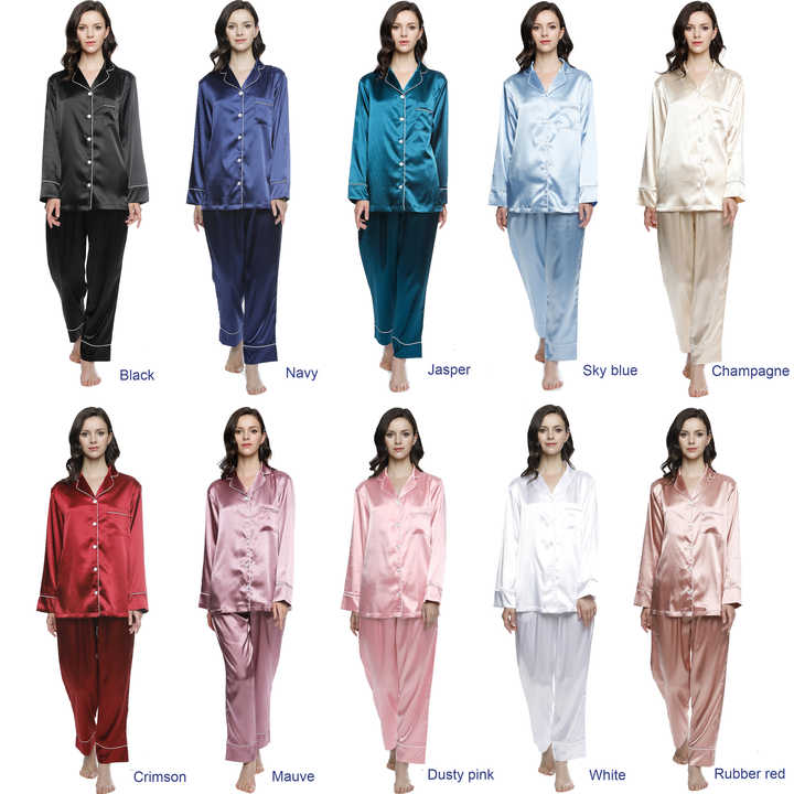RTS Women Silk Satin Pajamas Set Long Pyjama Two Pieces Sets