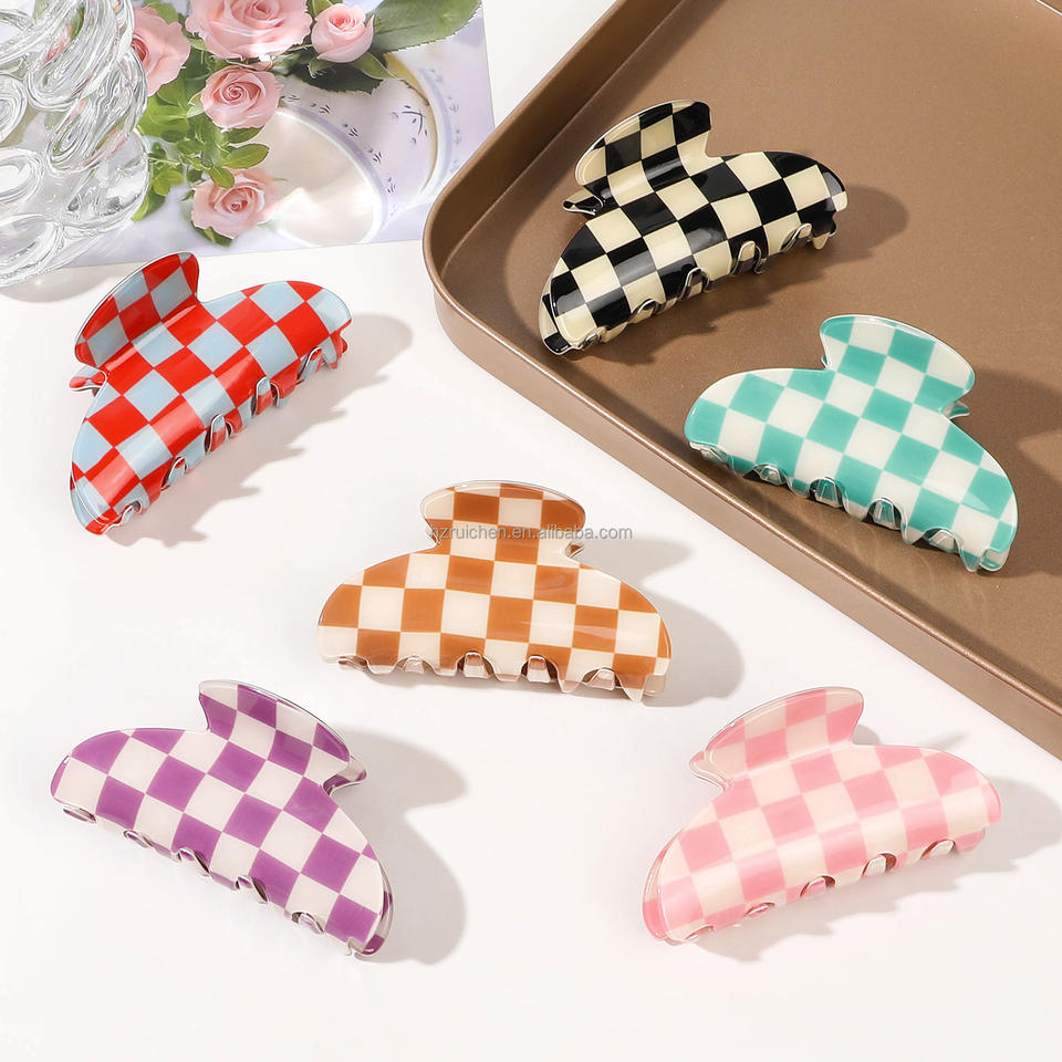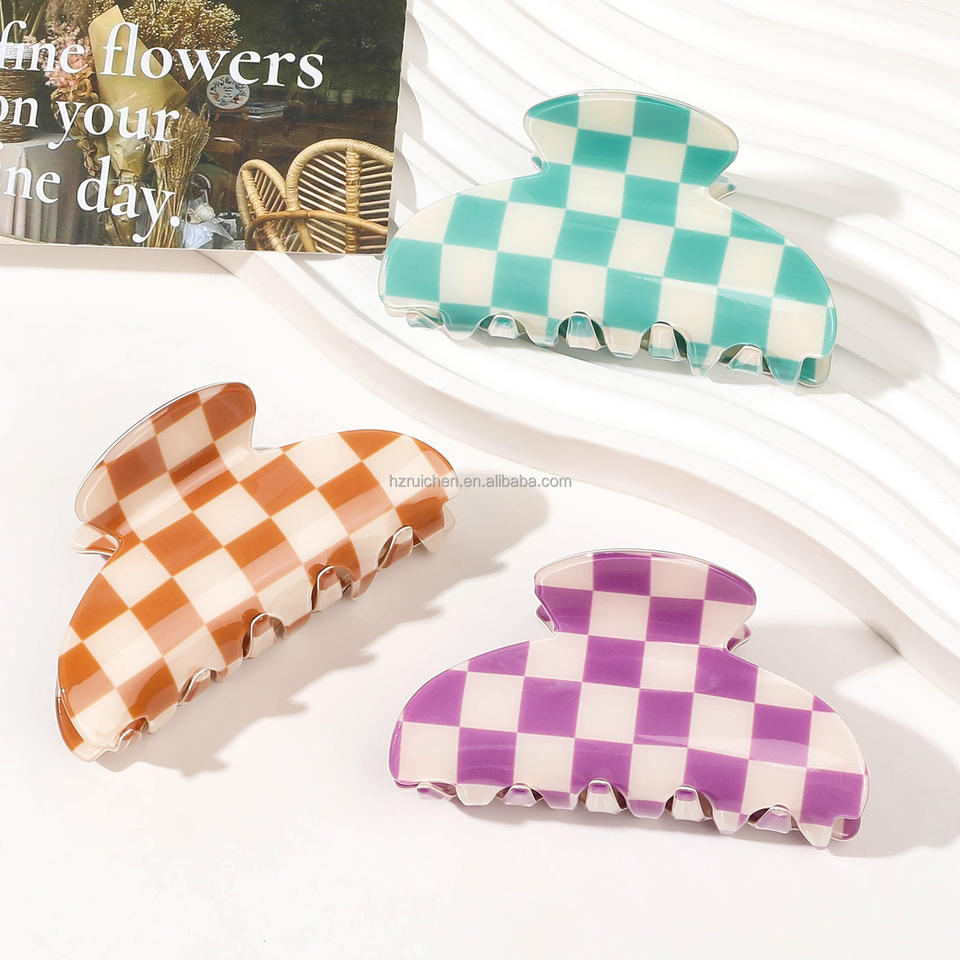 RUICHEN moderna pinza geometrica per capelli accessori per capelli da donna realizzati con disegno a scacchiera in acetato