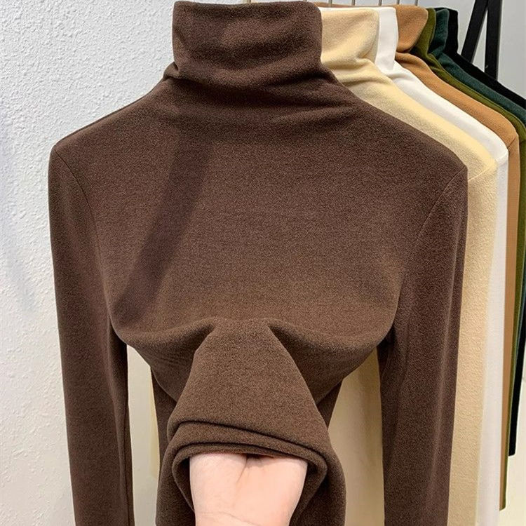Maglia Termica da Donna RUICHI 230GSM 1*1 in Velluto Tedesco a Costine, Maglietta a Collo Alto Tinta Unita Spazzolata Base Layer