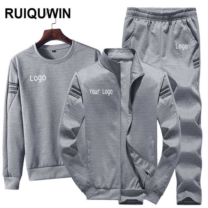 RUIQUWIN Wholesale Custom Men's Spring Fall Sportswear Set Zip Stand Collar Jacket Casual Pants 3 Piece Tracksuit Outfit