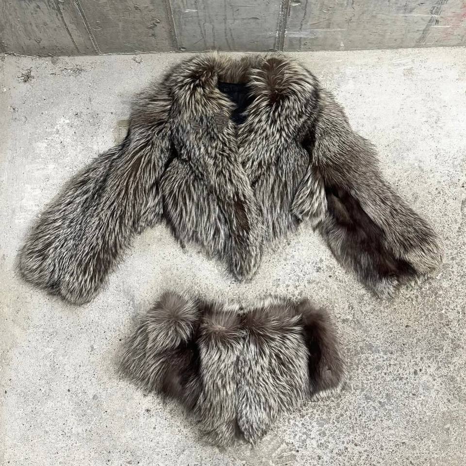 RX Factory Whole Skin Top Outerwear Coat Cropped Suits Natural Red Fox Fur Jacket Match Fur Shorts Pants One Set Women