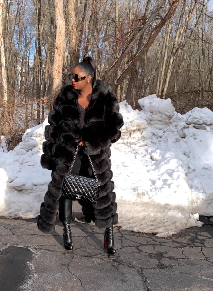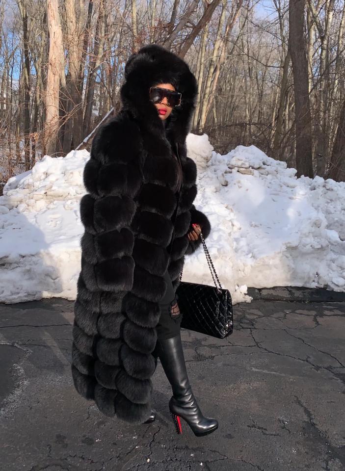 Soprabito di lusso RXFurs giacche di pelliccia calde da donna con maniche staccabili cappuccio invernale X-lungo in vera pelliccia blu volpe taglie forti