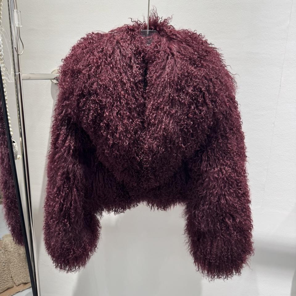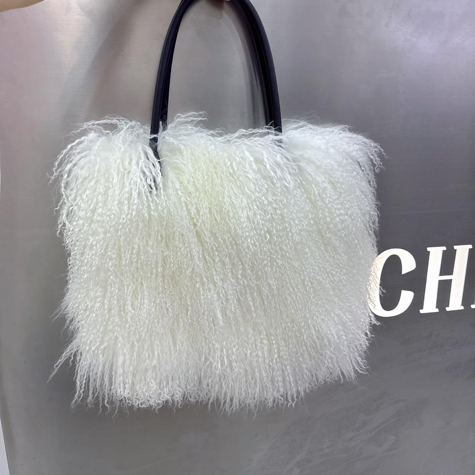 RXFurs Thick Fluffy Furry Outwear Winter Curly Overcoat Women Cropped Real Mongolian Lamb Big Collar Fur Coat with Handbag