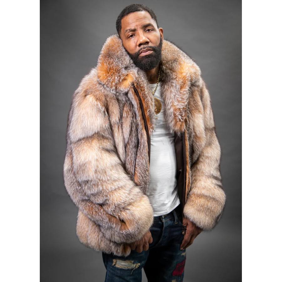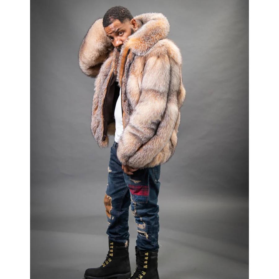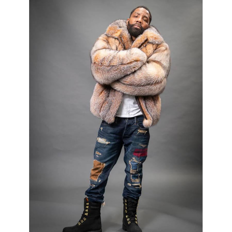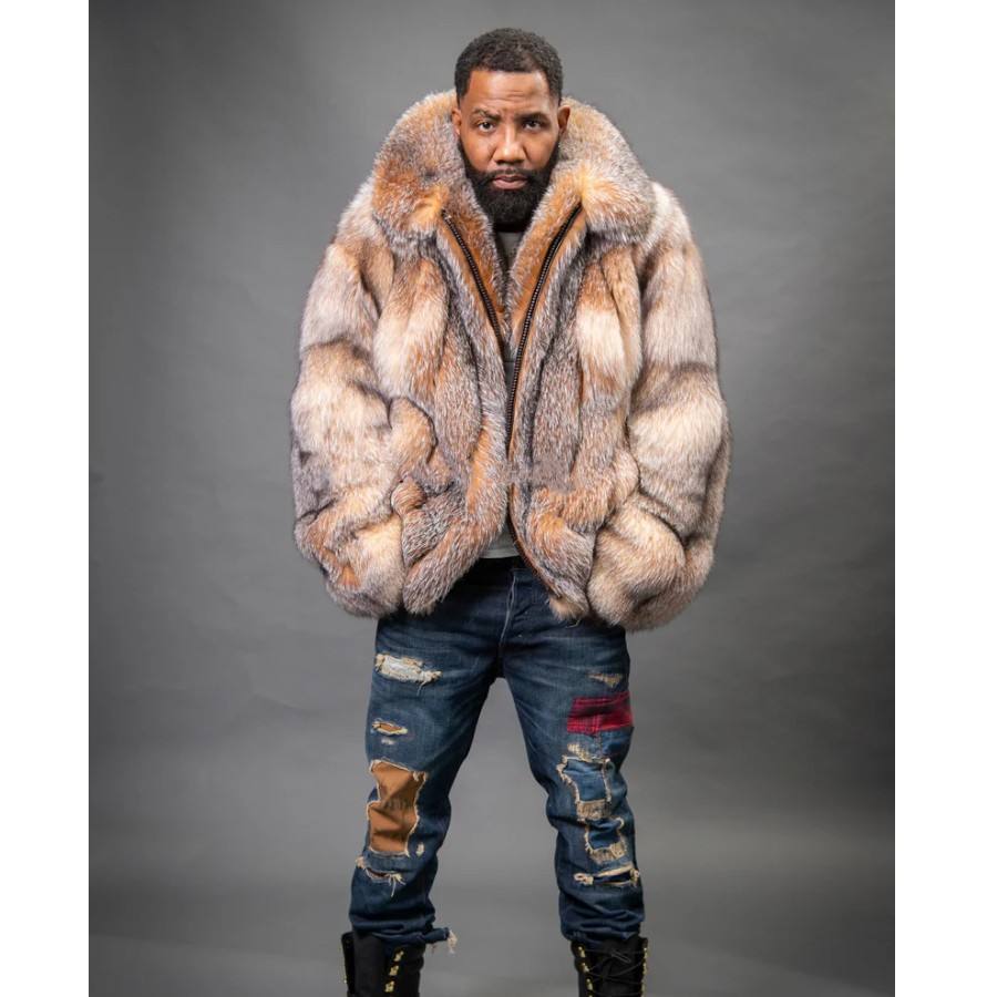RXFurs Cappotto Bomber Invernale da Uomo in Pelliccia a Righe Verticali e Taglio Dritto con Colletto, Colore Personalizzato per Esterno
