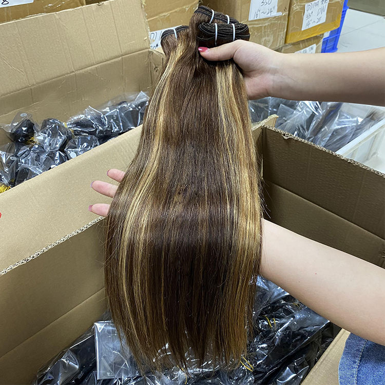 RXHAIR Brazilian Kinky Whole Sale Human Crochet Straight 4/27# Raw Hair Blend Bundles Peruanische Haar Long 24 Inch and Closure